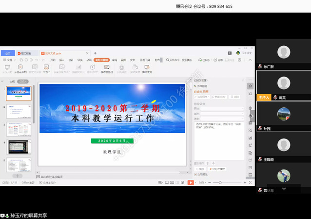 为有序推进“停课不停教、停课不停学”线上教学工作,布置学院新学期重点工作,3月6日下午,学院在“腾讯会议”线上平台召开2020年春季学期全院教师大会,副校长符杨、学院党政班子成员及全体教师参加会议。会议由学院党委书记徐广新主持。