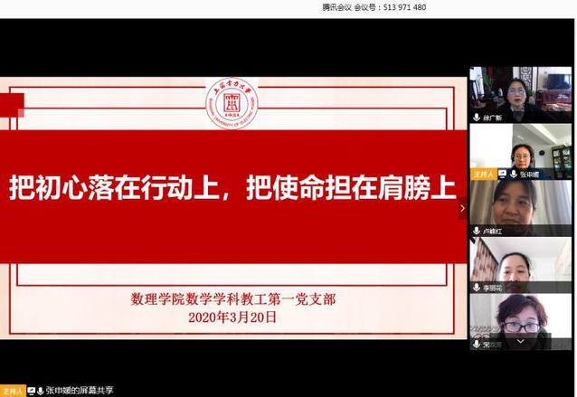 近期,各支部深入学习贯彻习近平总书记在统筹推进新冠肺炎疫情防控和经济社会发展工作部署会议上的讲话精神,开展了以“把初心落在行动上、把使命担在肩膀上”的线上党日活动。物理学科教工党支部开展“云课堂——物理教工在行动”在线物理教学研讨与经验分享活动,在云课堂建设过程中,物理系教工依据远程网络教学特征、翻转课特征,并结合我校学生自身特点,积极稳妥开展推进云课程建设;数学学科教工第一党支部观看了视频“人民至上——习近平指挥战‘疫’进行时”;数学学科教工第二党支部学习习近平总书记讲话原文,并对学院领导班子自疫情发生以来在疫情防控方面所做的工作谈论了自身的感受;信物本科生高年级党支部集体为一线的工作人员送祝福,他们用自己的方式为一线人员加油打气;信物本科生低年级党支部面对鲜红的党旗,重温入党誓词;研究生党支部组织抗击疫情知识竞赛等,在形式各异的活动中,各位党员锤炼了意志品质,实际行动把初心落在行动上,把使命担在肩膀上。下一阶段,学院党委会继续开展包括征文和创意作品等“共同战役·党员在行动”主题教育活动。