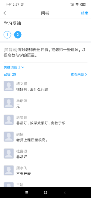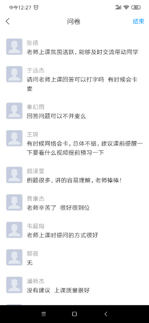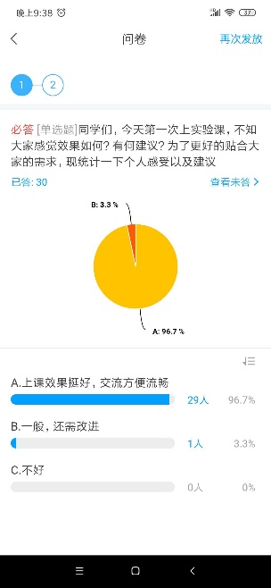 网上教学得到了师生的认可。将近90%的学生对网上教学效果给予了肯定。上图为学生的学习反馈及对贾老师的教学评价。