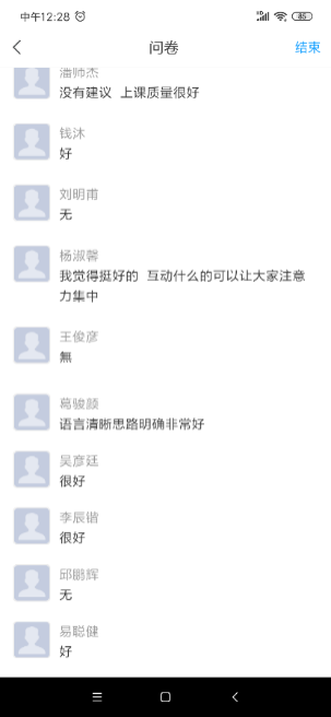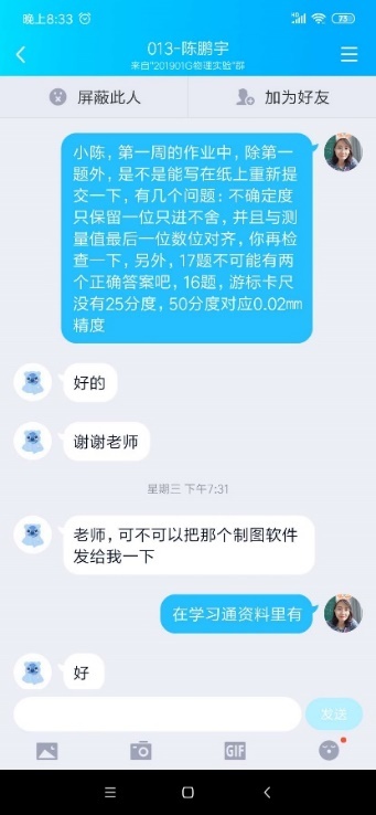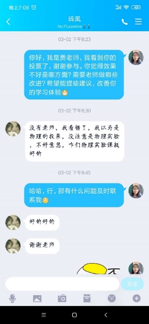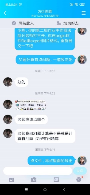 对于反馈效果不佳的同学,贾彩丽老师一一找同学了解情况,以期使每个同学都能尽快适应网上教学;对学生的疑问第一时间给学生回复;对学生作业中存在的问题,也及时反馈给学生。
