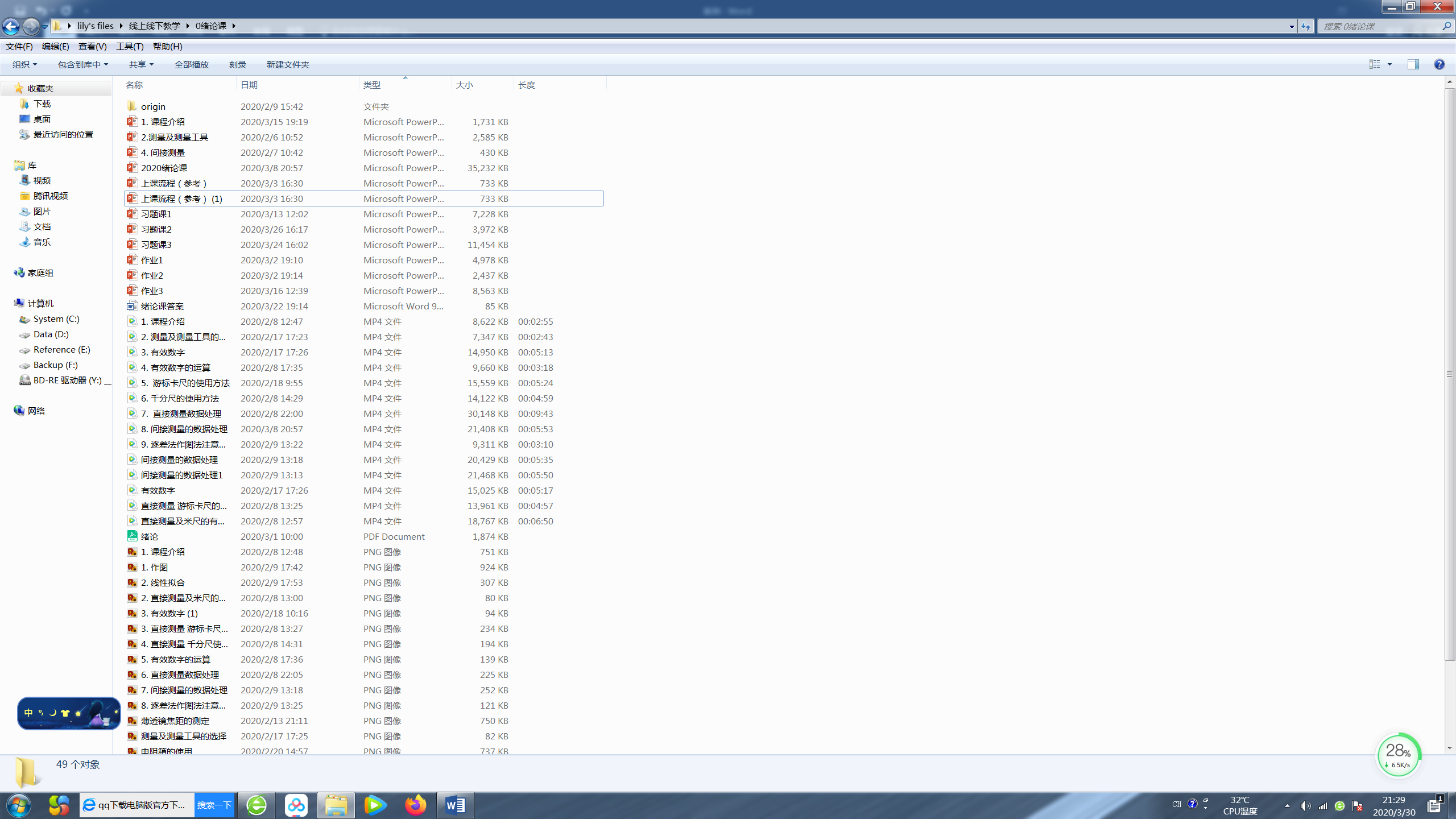 准备教学前期的90分钟的实验绪论课的视频录制:备课包括设计PPT、为每一张PPT做备注、录音、录屏、视频剪辑,其间还需要不断修改PPT,一张PPT的录音可能要重发七八遍,两周的教学量历时近一个月,贾彩丽老师为此牺牲节假日时间,加班加点赶制教学视频。