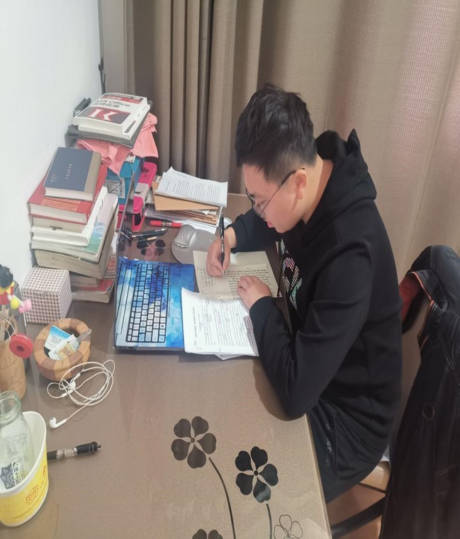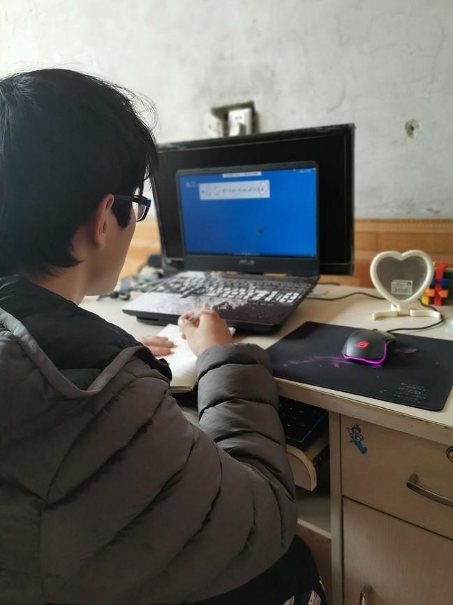 在学习过程中,老师们耐心指引,同学们一纸一笔地记录笔记。智慧树上随机抽取几位同学在QQ群中拍照上传自己昨天的作业,与同学分享自己的解题思路等等线上丰富多彩的学习“花样”极大的提高了大家的学习积极性,2019级应用物理专业19231班王学坤同学说:“网课要求严格,不敢轻易旷课,上课效率不错,作业还是吸收知识的关键。在上完网课之后,我一般会看一些国内外新闻以便了解现在国际形势和各种大事件,然后我会在晚饭前进行适当的体育锻炼,完成体育课的任务,到了晚上再思考一下有没有遗漏的作业和学校任务,之后可以利用闲暇时间读一些课外的书,像是《瓦尔登湖》《百年孤独》这种世界名著都会再重温一下,受到熏陶颇有感触,对自己的文学素养大有裨益。”用行动诠释了,人“宅”学识不能“窄”。