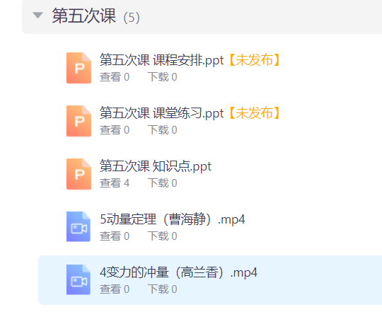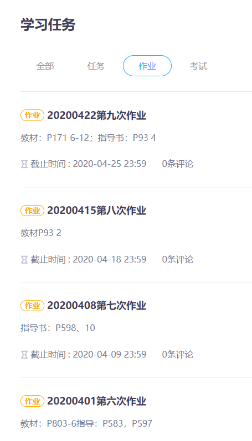 除智慧树平台的共享视频外,每次课堂直播前徐燕老师都会将本次课程的知识点、课堂练习题、习题讲解视频等资料上传平台。在每一次课结束时布置好下节课的预习任务及课后作业。每章结束都会进行课堂测试,相较线下学习,这种方式能更及时的反馈学生的学习效果。