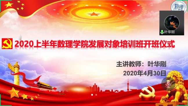 为切实做好学院发展对象的培养、考察和教育管理,不断提高发展对象的党性修养和政治理论素养,端正入党动机,坚定理想信念,强化青年大学生在防控疫情工作中的责任与担当,4月30日至5月15日,数理、计算机、电信、外语学院分党校组织了发展对象培训班培训。4月30日,四个学院举行了开班动员会,学院党委副书记、专职组织员及全体培训班学员参加了线上开班动员会。