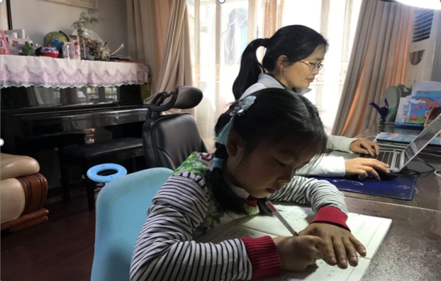 在这场特殊的疫情面前,李慧玉老师身兼数职:硕士生导师,本科生老师,两个女儿的辅导老师。面对学生们,她是初心使命的坚守者,面对女儿们,她是无所不能的“超人”妈妈。