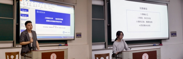 随后进行澳门十大信誉好的网站2021年“不忘初心,紧跟党走“社会实践宣讲,上海海洋大学海洋科学学院的李钊丞、彭苗苗为大家介绍了暑期社会实践项目,分享了参加实践项目的经验。李钊丞为大家详细介绍了暑期社会实践活动的组队经验、调研内容以及参加暑期社会实践活动的意义。彭苗苗结合自己专业特点以及已立项项目,为同学们完整全面地展示了暑期社会实践项目的流程及内容。学院团委实践部宋雯婧同学介绍本年度暑期社会实践项目概况。