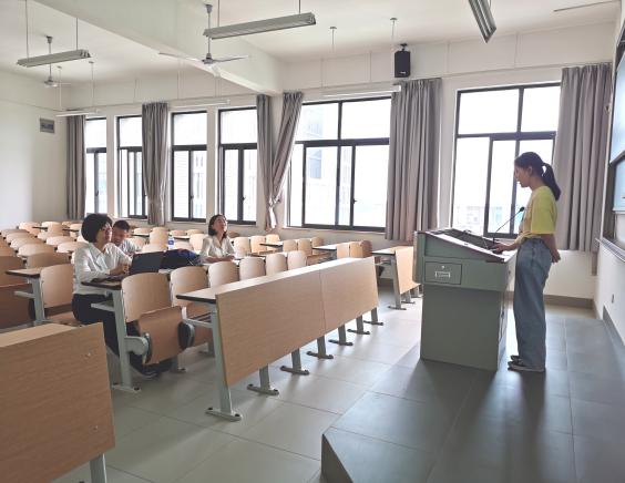 在自述的环节同学们使用图文并茂的形式,结合自己的PPT来阐述自己论文的选题目的、理论框架、研究问题的方法及其实际意义等。随后,答辩组的老师们针对论文所研究的主要内容进行提问,学生现场进行回答。
