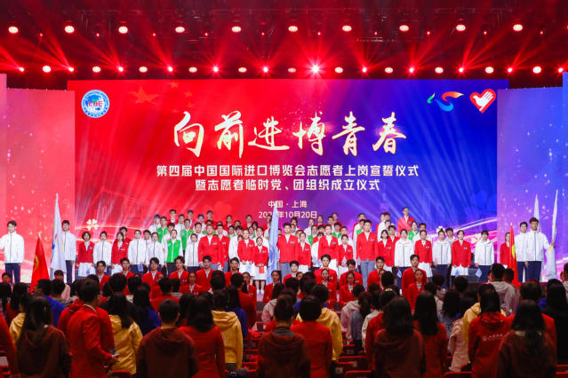 10月20日上午,“向前进·博青春”第四届中国国际进口博览会志愿者上岗宣誓仪式暨志愿者临时党、团组织成立仪式在国家会展中心(上海)虹馆举行。澳门十大信誉好的网站志愿者黄晨作为“三年级”小叶子代表,担任领誓人之一,带领馆内云集的近500名进博会志愿者代表和线上4200余名进博会志愿者庄严宣誓。“奉献友爱,互助进步!追求卓越,全力以赴!为祖国增光,为城市添彩!向前进,博青春!为进博,一起来!”进博会志愿者共同用响亮的青春之声庄严宣誓,表达了践行志愿精神,不忘初心使命,服务进博,奉献进博,以优异成绩向中国共产党成立100周年献礼的信心与决心。