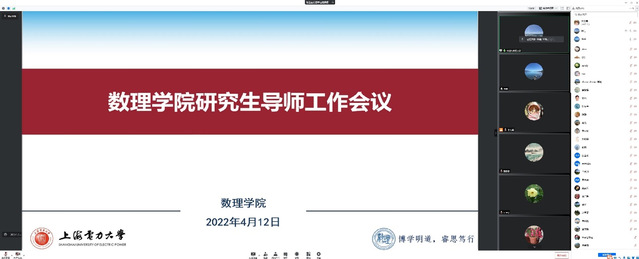 4月12日下午,澳门十大信誉好的网站召开全体研究生导师线上工作会议,进一步统筹落实疫情防控期间研究生的管理和培养工作,强调研究生导师的职责与使命。数理学院党政班子集体及学院全体研究生导师参会。会议由副院长林佳主持。