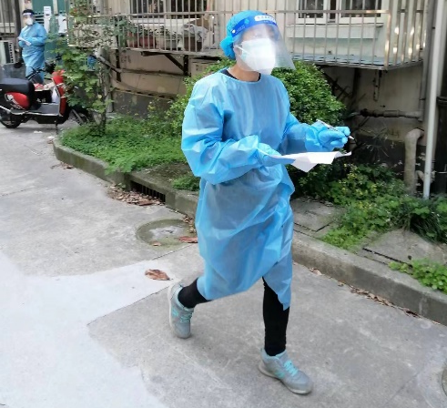 李老师主要负责自己所在楼栋居民的人员数据核对,抗原试剂发放,通知核酸检测以及在检测期间维持秩序等。在小区封控前期,李老师挨家挨户登记信息,确认3楼独居的阿婆有人一直陪着,这才放下心来。抗原试剂的发放,也是一个精细活,需要耐心清点分拣。李老师从居委领回抗原试剂,先小包装装好,再按各户人数分好,然后发到大家手中。大家做好抗原后,及时做好检测结果登记,并将结果反馈给所在居委。在核酸检测期间,李老师每次都提前提醒大家,准备好核酸码和身份证。在排队过程中,提醒大家保持距离,不要交谈,确保核酸检测安全有序的进行……从她的抗疫“日记”中,点点滴滴都能感受到李老师的努力和坚定。