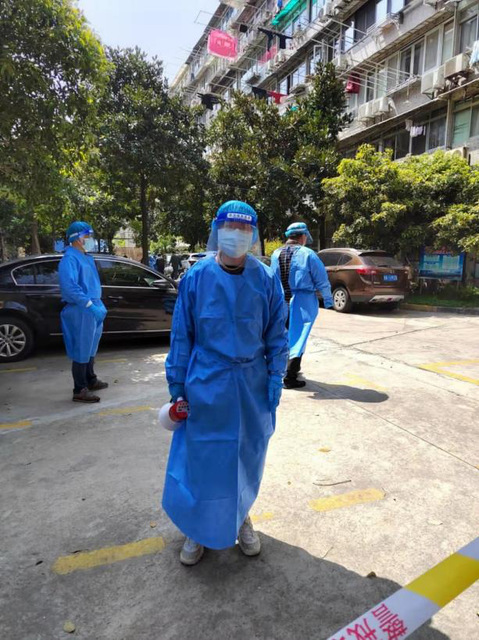 薛老师还主动协助小区的核酸检测工作,作为志愿者,维持秩序,进行疏导,“请大家提前打开二维码,保持两米间距……”这样的话薛老师一天要重复许多遍,但是居民们看到的薛老师永远是精神饱满且昂扬的。无论是阳光普照的晴天还是刚刚下过雨的冷风中,居民们都能看到薛老师坚守在核酸检测志愿者的岗位上。