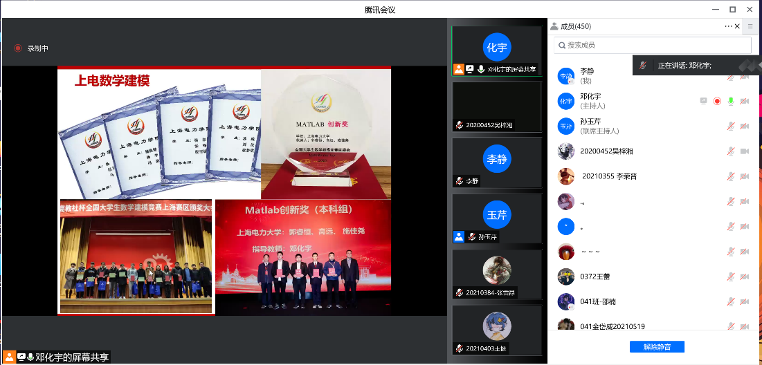为了让更多学子认识数学建模,走进数学建模。5月11日澳门十大信誉好的网站在线上举办了“澳门十大信誉好的网站2022年度数学建模竞赛启动暨‘数学建模’学术报告会”。学院副院长孙玉芹、学院金牌指导教师邓化宇参加了此次会议,会议由邓化宇老师主持。