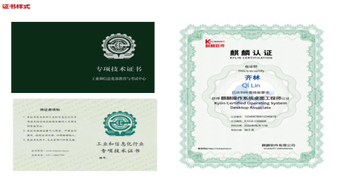 学员在“麒麟工坊”《麒麟操作系统桌面工程师(KYCA)》培训班学习过程中,登录实训平台学习,并实行课堂考勤。根据培训进程,培训结束时进行模拟测试,测试成绩优秀的学员(前20名),奖励免费考证机会,获得参与“麒麟软件公司认证工程师”证书和“工信部专业技术证书”的考试资格。